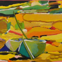 Laran paints, both figuratively and abstractly, using vibrant oil